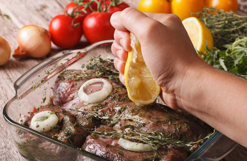 Часто для маринада используют большое количество свежего репчатого лука: его сок тоже хорошо размягчает волокна. Да и по вкусу он отлично сочетается с любым видом мяса. Кстати, вот вам маленький лайфхак: чтобы при чистке и нарезании лука глаза меньше слезились, положите луковицы перед нарезкой на 10 минут в морозилку или на полчаса в основное отделение холодильника. Помогает также регулярное промывание ножа в холодной воде: резать лук таким способом будет намного комфортнее.