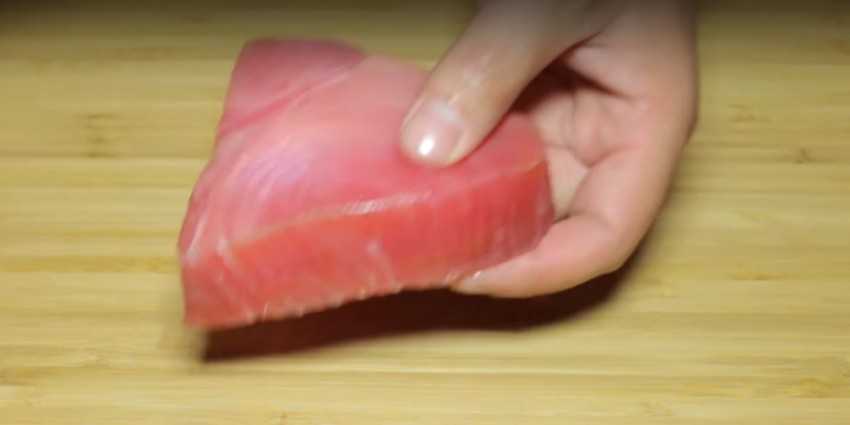 Кусочки тунца должны быть не толще 3 см, чтобы рыба хорошо пропарилась.