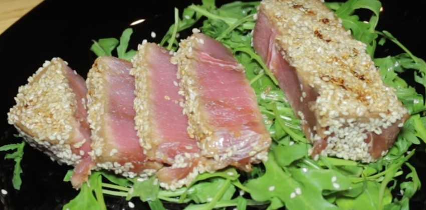 Тунец на гриле, запеченный с травами и кунжутом (рецепт с фото)