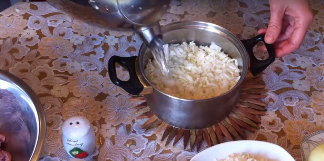 - Подготовленную порезанную капусту нужно обязательно залить кипятком и дать воде остыть. Тогда овощ будет мягче.