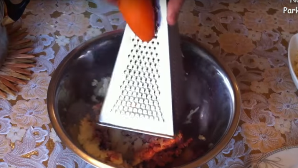 - Репчатый лук можно измельчить с фаршем или мелко нарезать. Если лук шинкуют, его тоже обдают кипятком для удаления горечи.