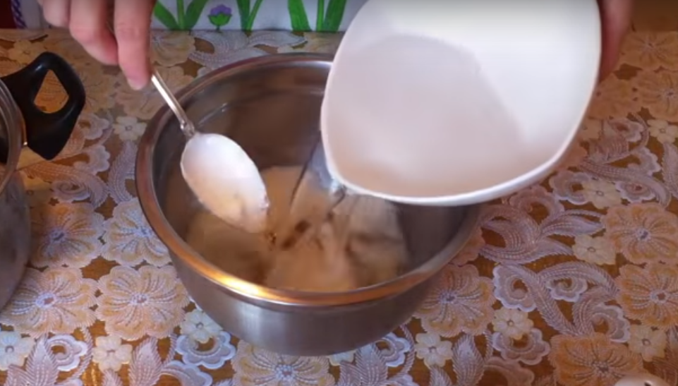 - Для придания будущему соусу густоты, в чашу просеивают пару ложек пшеничной муки.