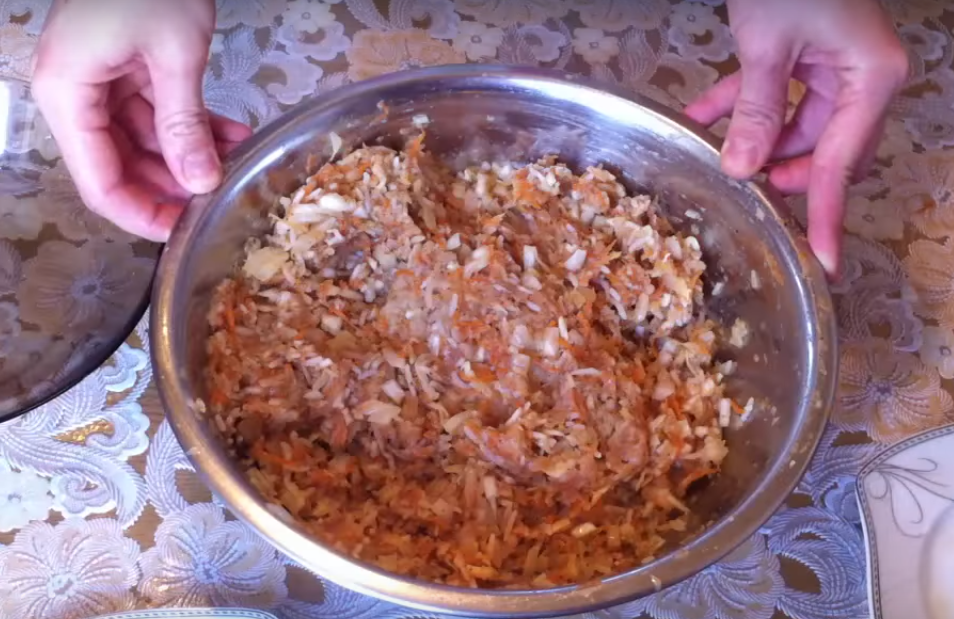 Фарш готовится в точности так же, как и в первом рецепте «вкуснейшие голубцы».