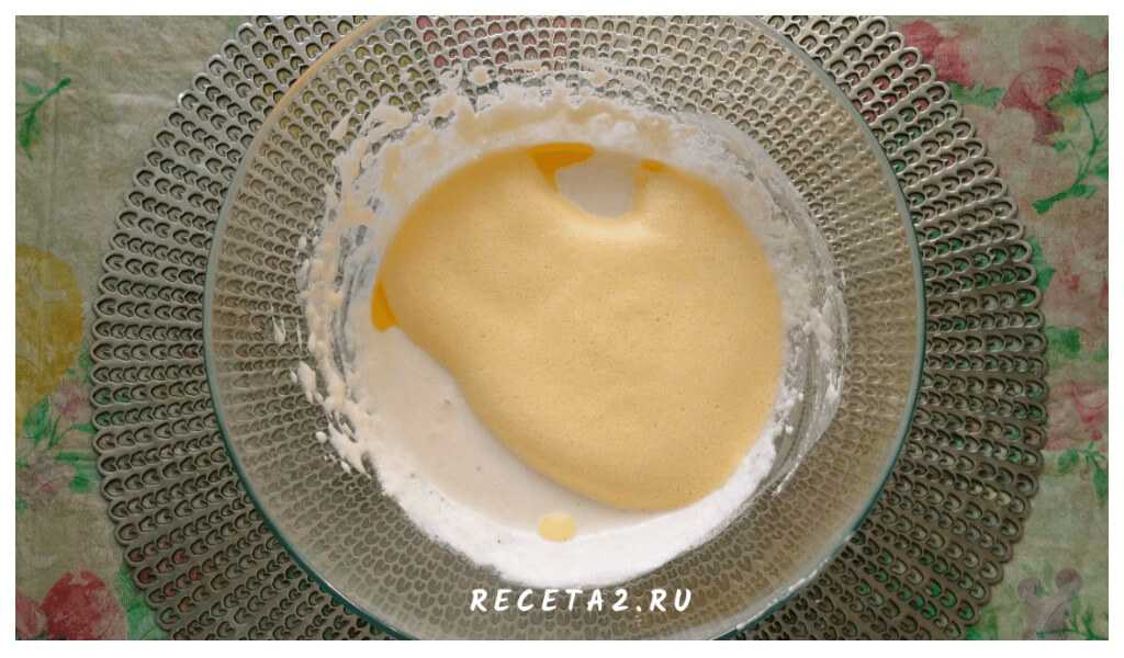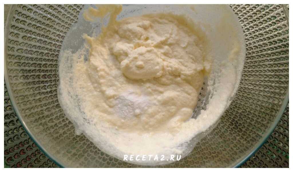 - Чтобы десерт получился пористый, добавьте взбитые белки.