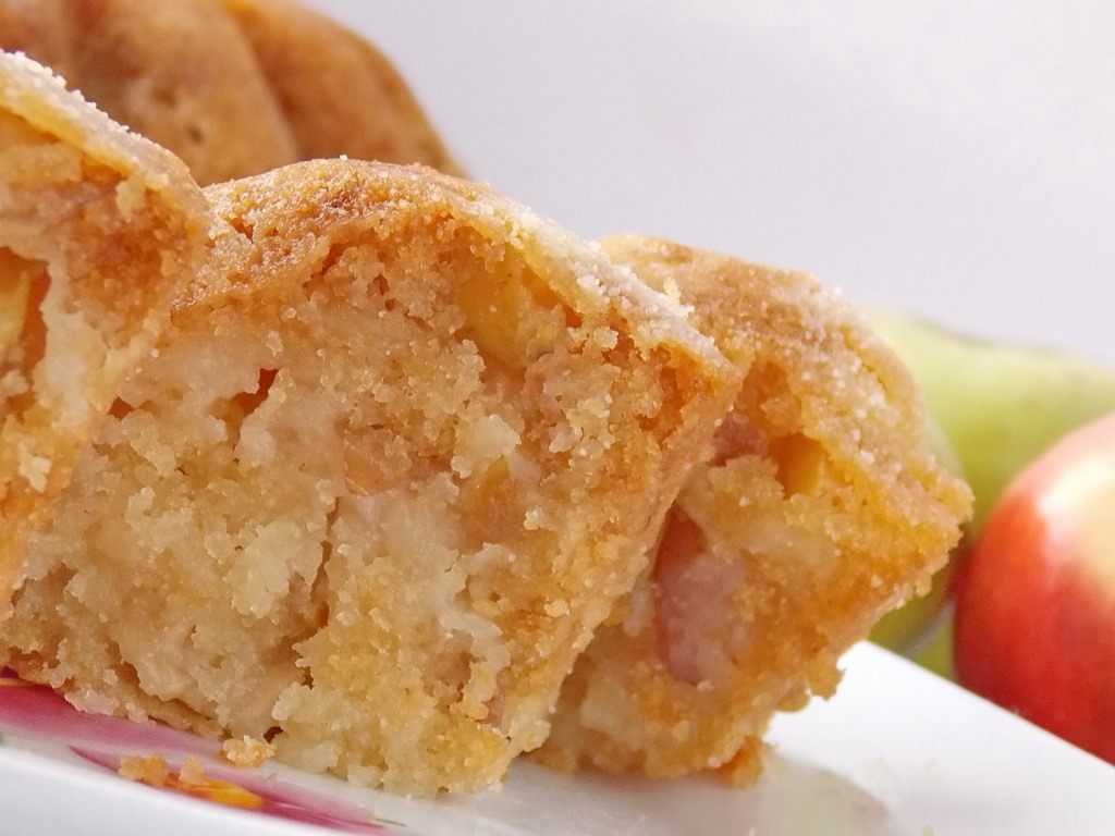 При подаче режем на части, можно посыпать сахарной пудрой, полить джемом, шоколадом, подавать с шариком мороженого — ориентируйтесь на свой вкус.