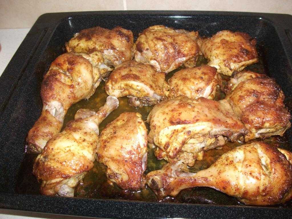 Оставляем в холодильнике на ночь, а после запекаем на решете в течение 30–35 минут. Под решетку нужно обязательно поставить противень для стекания жира и не забывать переворачивать куски курицы, чтобы получить равномерно прожаренную аппетитную корочку.