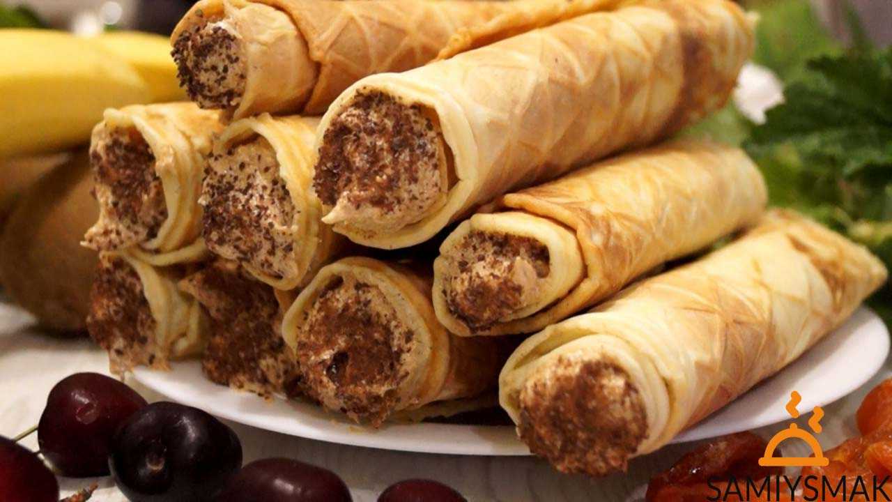 Закуска из блинчиков с крабовыми палочками и красной рыбой