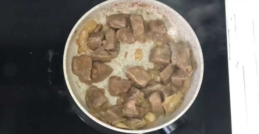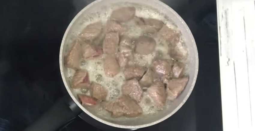 Жарить изделие будет до образования золотистой корочки с двух сторон. Как только с этой задачи справитесь переходим к следующей. Так как мясо у нас кусками и не резаное, значит до готовности оно не дошло и наша задача довести его до готового состояния.