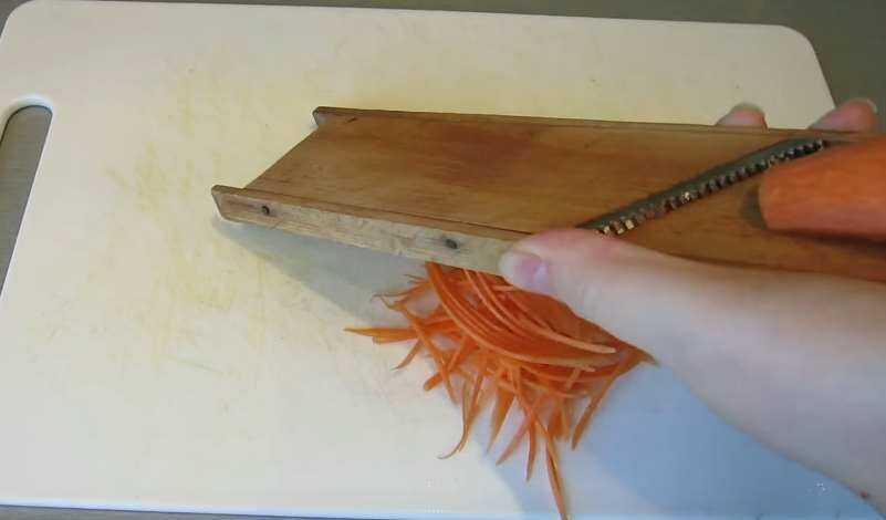 Морковь очищаем от кожицы. Затем натираем на терке для корейской моркови.
