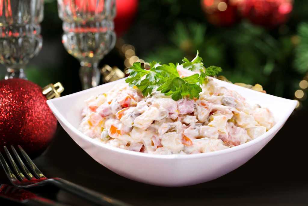 Практически в любом салате на День рождения мы используем майонезную заправку. Этот рецепт с фото предлагаем сделать без майонеза, простое исполнение и вкусное блюдо обязательно понравится всем. В отличие от множества салатов с жирным майонезом, этот вариант легкий, нежный, но при этом достаточно сытный.