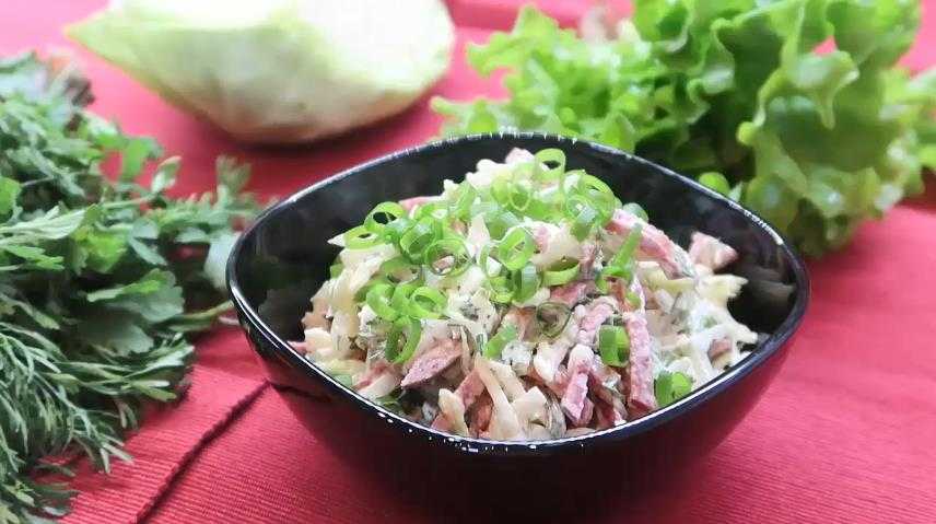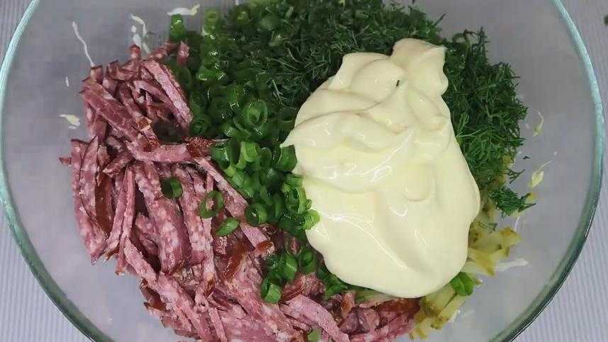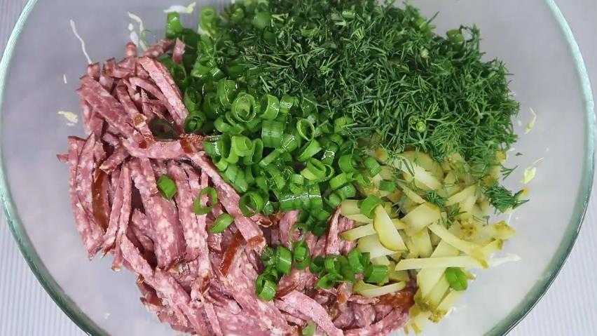 Рецепт 4, пошаговый: салат с колбасой на скорую руку