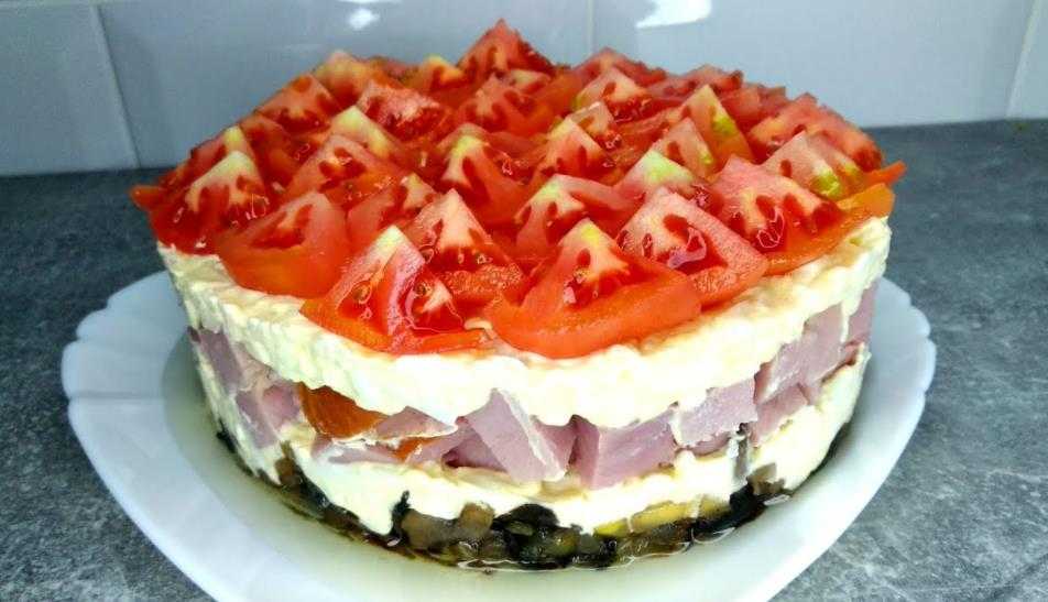 Слоеный салат «Богатый маркиз» с ветчиной и морковкой по-корейски