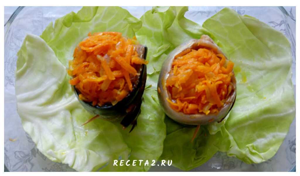 Готовое блюдо можно сервировать на листьях салата, сверху присыпав рубленным укропом, при желании – молотым перцем.