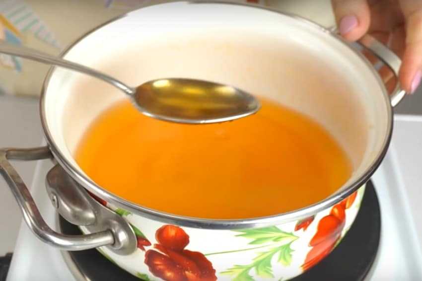 5. Разбухшее апельсиновое желе нагревайте, пока оно не станет однородным.