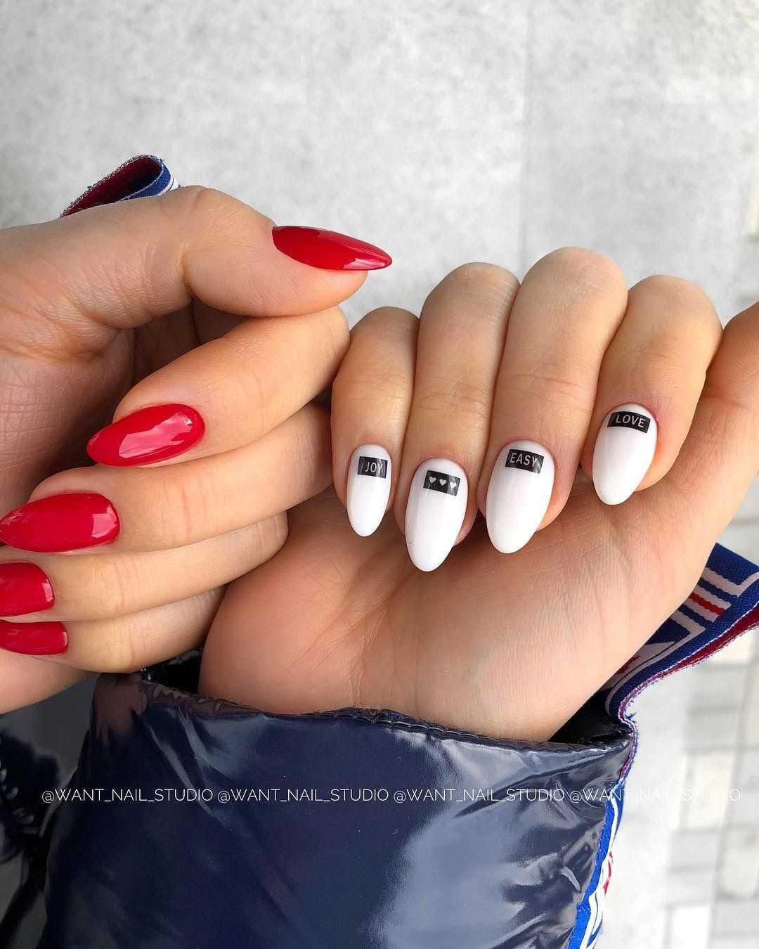 “Буква” черно-белой росписи ногтей стала заметной тенденцией благодаря маникюру с показа Jeremy Scott. На нем чередовались черные надписи на белом фоне и белые на черном. Если вам есть что сказать, почему бы не сделать это с помощью украшения для ногтей? А на фото такой черный дизайн ногтей с белыми элементами будет выглядеть шикарно.