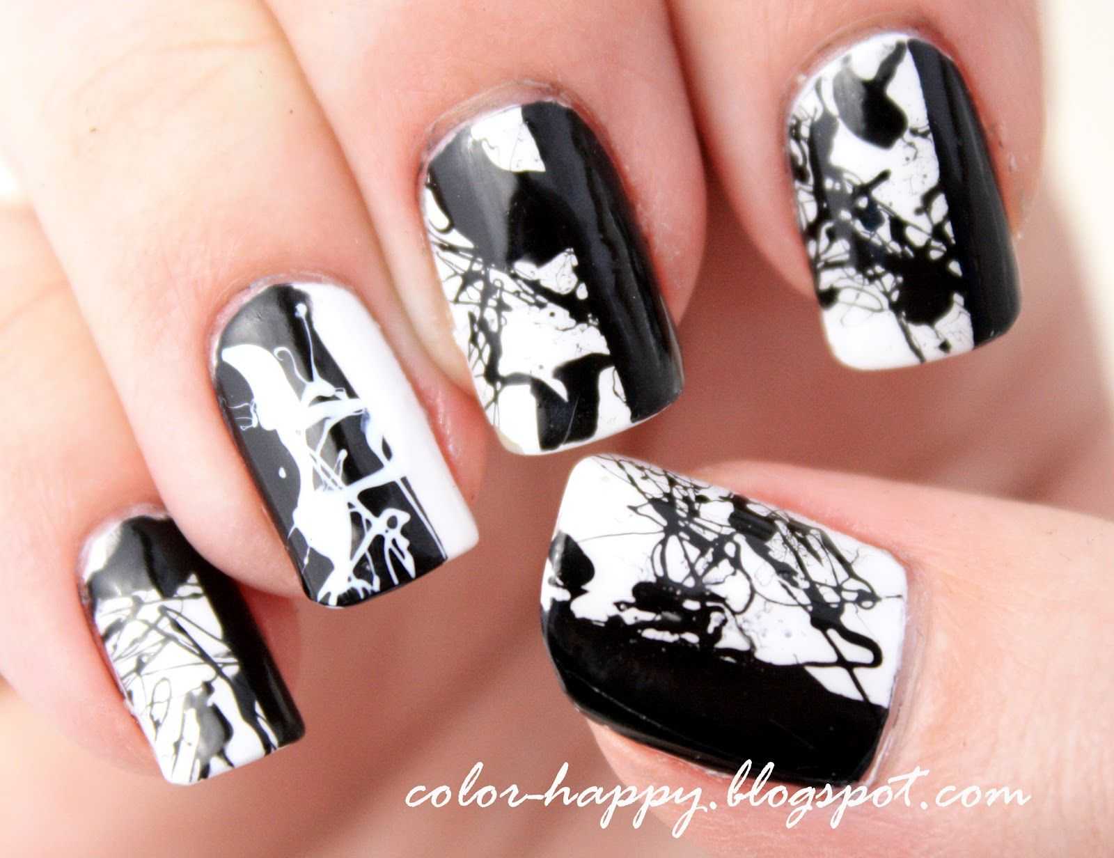 Черно-белый мраморный маникюр
