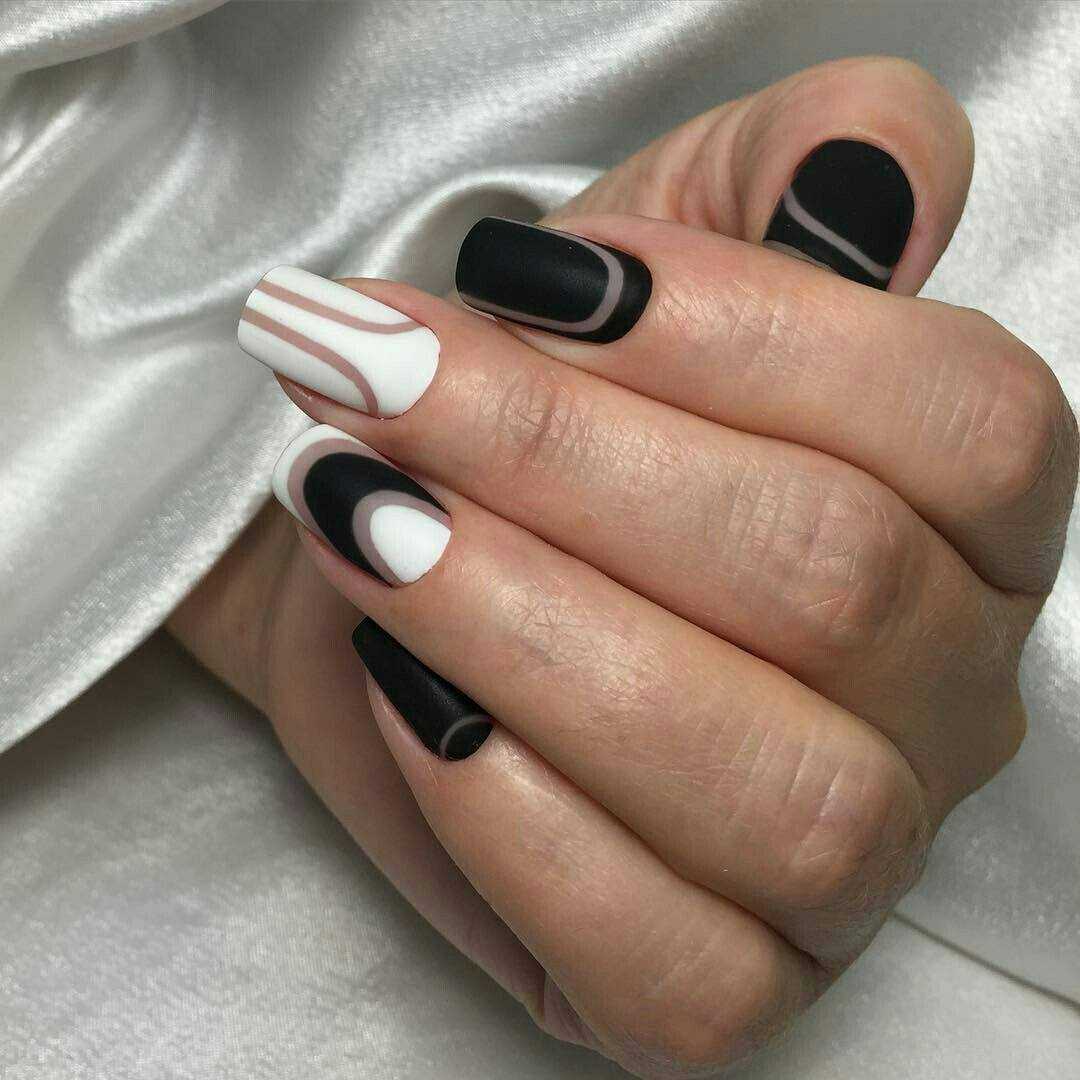 Черно-белый матовый маникюр
