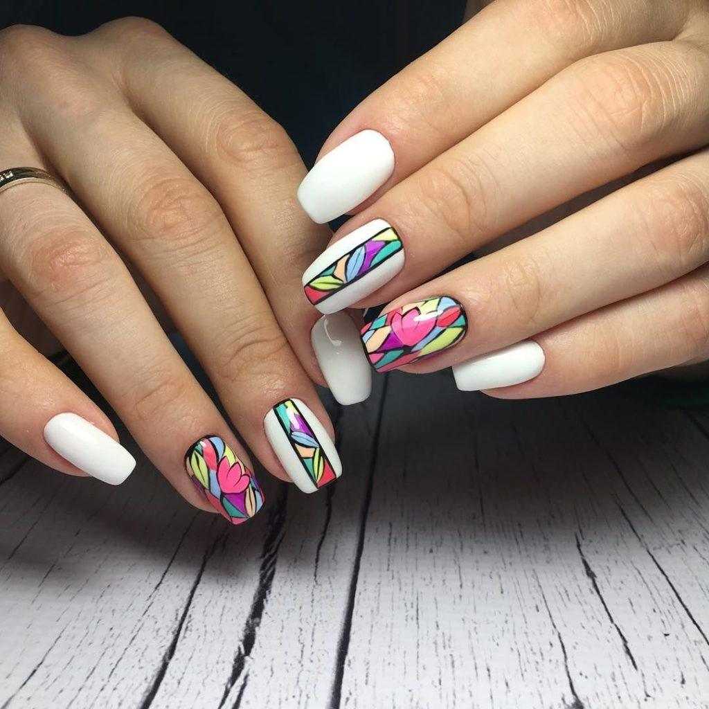 #5 Контрастный белый маникюр с другими оттенками