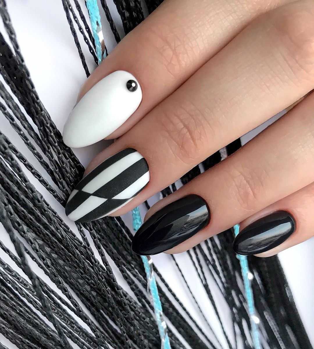 Как видите, наличие только двух оттенков лака для ногтей – черного и белого – не повод для создания сухих и однообразных ногтей. Даже с ними вы можете быть оригинальными и придумывать стильные и уникальные дизайны. Попробуйте сделать монохромный маникюр, и вы поймете, насколько безграничны возможности использования этих цветов в нейл-арте.