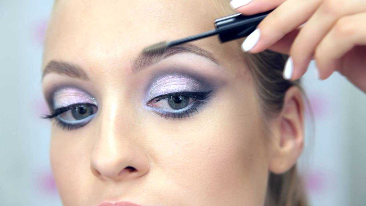 - Бровки. Их изящная линия придает выразительности, взгляду глубины. Причешите бровки, закрасьте тенями с помощью плотной кисточки. Зафиксируйте их специальным гелем для бровок.