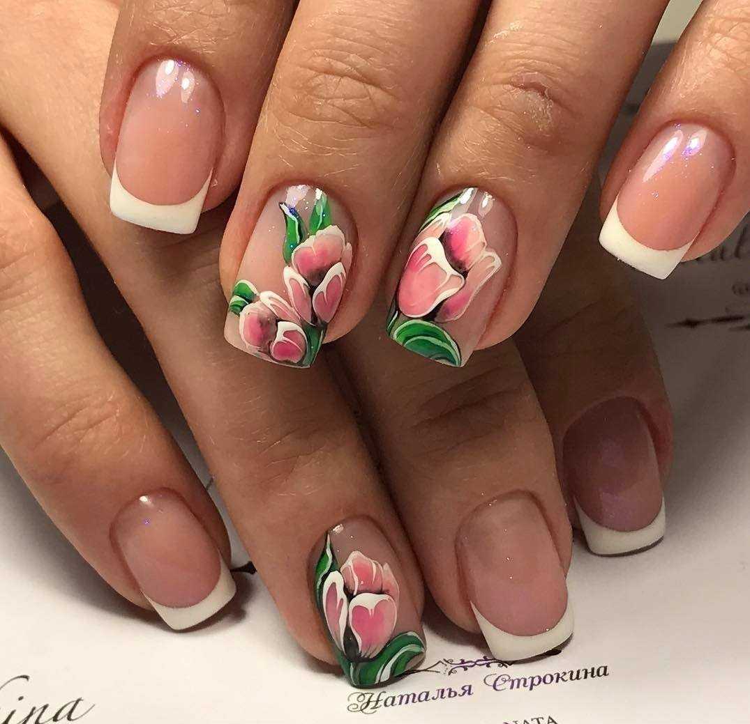 Френч с цветами модный дизайн в маникюре