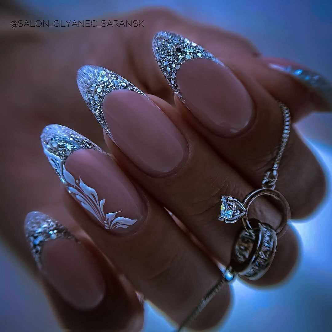Французский маникюр с блестками фото 2022