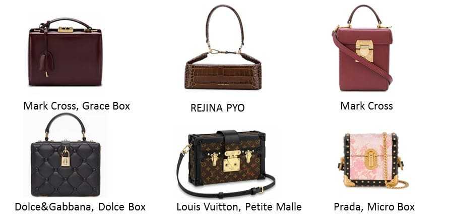 Box Bag — это небольшая сумка в форме коробки с небольшой ручкой, а иногда и с длинным плечевым ремнем. Сумка появилась еще в 1950-х годах и носит явный ретро-флер.
