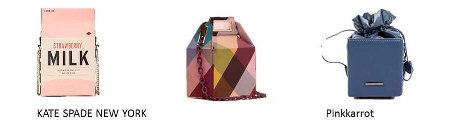 Разновидностью Box Bag является китайская коробочка. Это сумка, которая по форме имитирует картонную коробку для еды на вынос, в которой обычно продается китайская лапша. От сумки-бокса ее отличает специфическая крышка, сделанная в технике оригами. В крышку может быть встроена ручка плюс прикреплен длинный плечевой ремень или цепочка. Сумка выглядит весьма нетривиально и хорошо поддерживает азиатскую тему. Эта сумочка больше несет на себе этническую тематику, чем рассказывает ретро-истории.