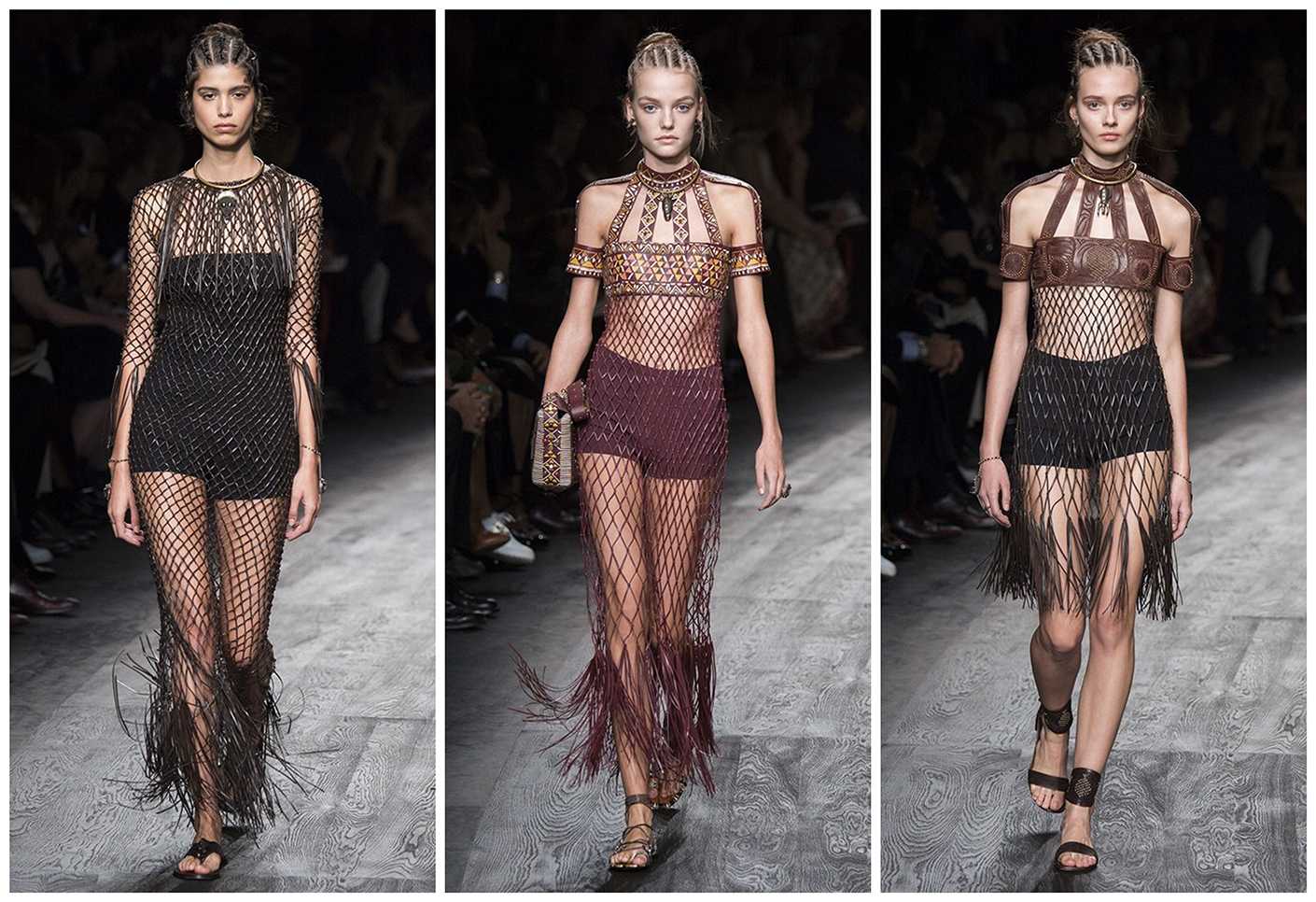 Так очень многие модельеры представили свои коллекции из сетки. Черная сетка с бахромой может быть использована как самостоятельное платье под красивое белье, короткое платье-сетка — под тип вечернего платья, которое напоминает комбинацию. Это очень дерзкий вариант костюма для парадного вечернего выхода. Сетчатая майка может идти под топ телесного или пастельного оттенка, это смотрится одновременно и агрессивно, и соблазнительно. Не обязательно сетка должна быть именно черной, хотя черная была наиболее популярна на модных показах. Великолепно смотрится пестрое сетчатое платье под яркое летнее белье и полосатую шляпку от солнца. Это отличный способ выглядеть эффектно на пляже.