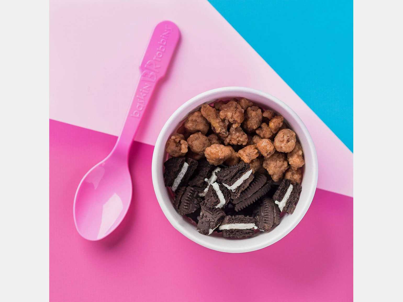 Идея Берта Баскина и Ирва Роббинса о максимальном разнообразии «на каждый день» получила ещё одно интересное продолжение. Бизнесмены решили, что у людей должна быть возможность попробовать столько вкусов мороженого, сколько им потребуется, чтобы найти для себя самый лучший. И заплатить при покупке только за него. Так в 1960 году появилась легендарная фирменная розовая ложечка для пробы мороженого.