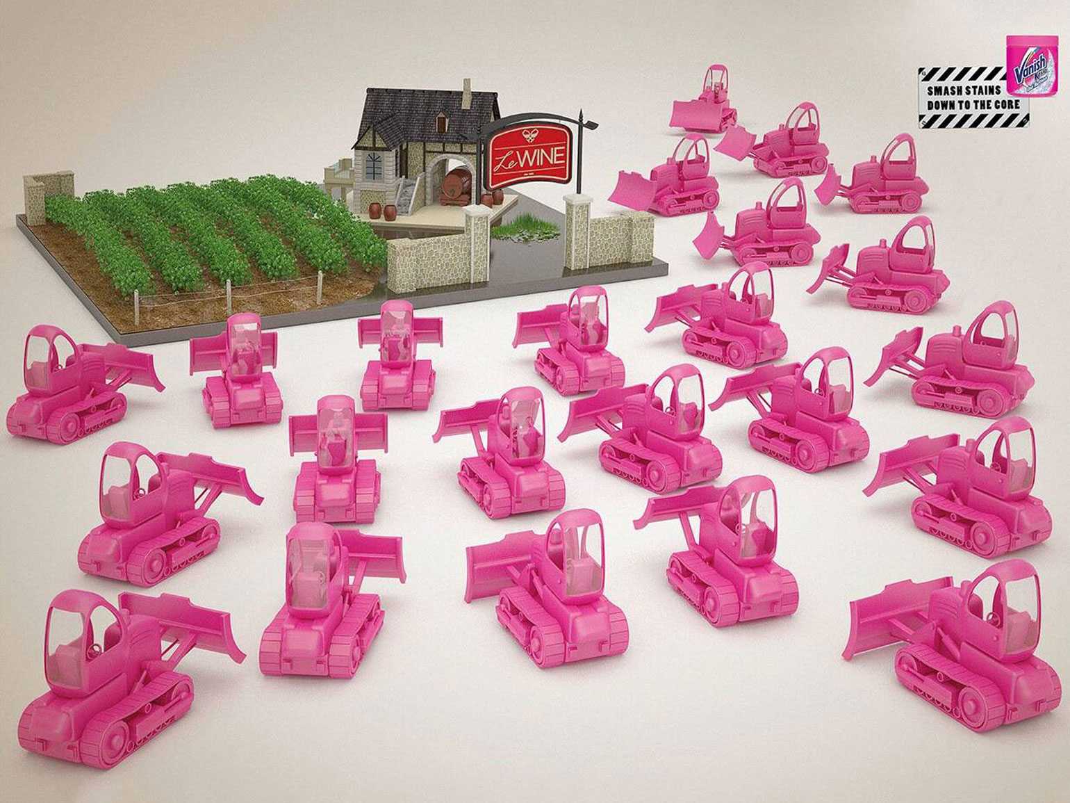 В последние годы Vanish активно использует свой цвет в видеорекламе. Если раньше персонажи могли просто носить розовые футболки, то сейчас картинка нарочито розовая, чем сильно выделяется на экране. Если посмотреть некоторые ролики, от фуксии может зарябить в глазах: розовые интерьеры, розовая одежда, розовая жидкость и даже сами пятна на одежде ― розовые. Всё подчинено фирменному оттенку.