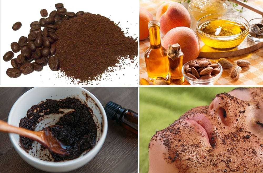 Персиковое масло тщательно перемешать с медом, а затем добавить эту смесь в кофейную гущу. Еще раз перемешать до равномерной консистенции. Нанести на лицо ровным слоем, мягкими движениями, не массируя