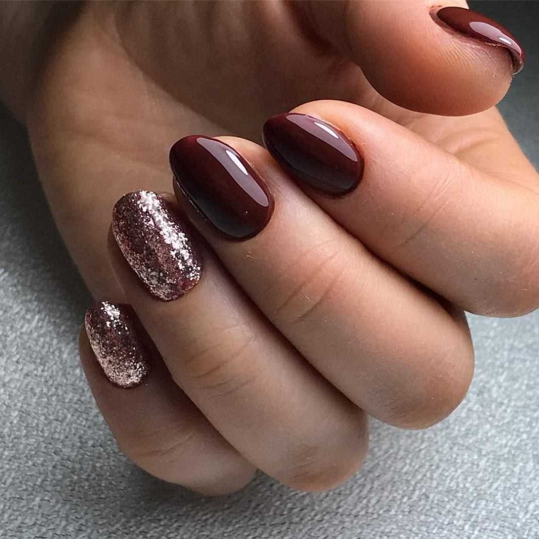 Удачным выбором считается и насыщенное темно-коричневое покрытие, которое прекрасно смотрится как в гордом одиночестве, так и в дополнении с дизайном – стразами, рисунками или контрастом фактур.