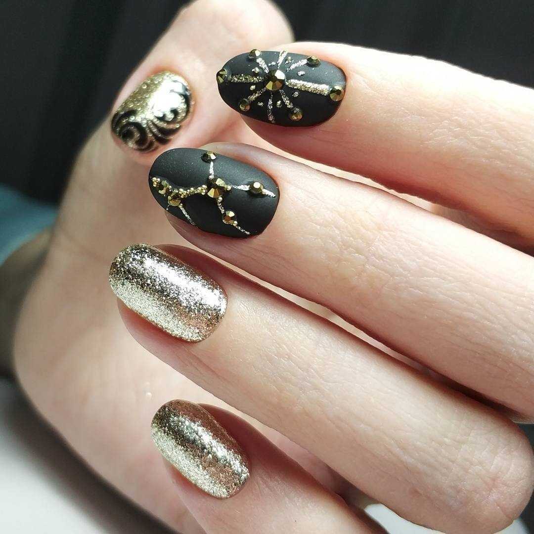 Что касается техник маникюра, то популярностью пользуются однотонные нейл-арты, маникюр с узорами на безымянном пальце. Шикарно выглядит маникюр, в котором узор перенесен с безымянного пальца на большой. В тренде также френч и лунный дизайн, маникюр “кошачий” глаз, декор с пайетками на темном фоне.