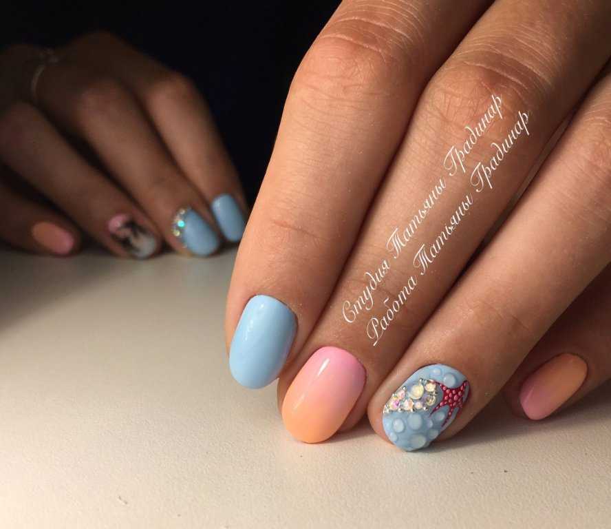 Какой нейл-арт будет популярен в этом сезоне? Используйте проверенные техники и дизайны, перекликающиеся с морской тематикой. Обычно у мастеров не возникает проблем с созданием ярких тематических дизайнов в отпуск. Если вы решили украсить ноготки самостоятельно, то предлагаем подборку лучших фото-идей маникюра на море.
