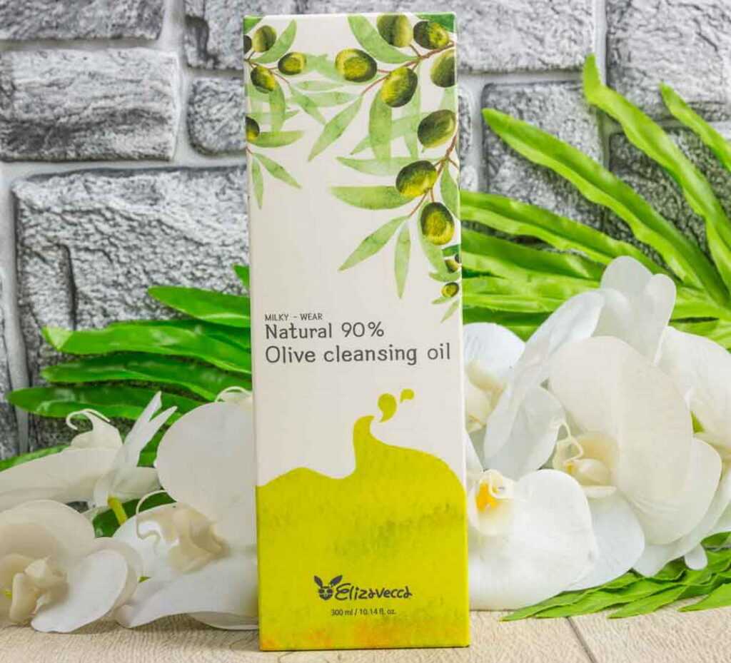 - Natural Olive Cleansing Oil от Elizavecca. На 90% состоит из оливкового экстракта, обеспечивает эффект сияния после применения;