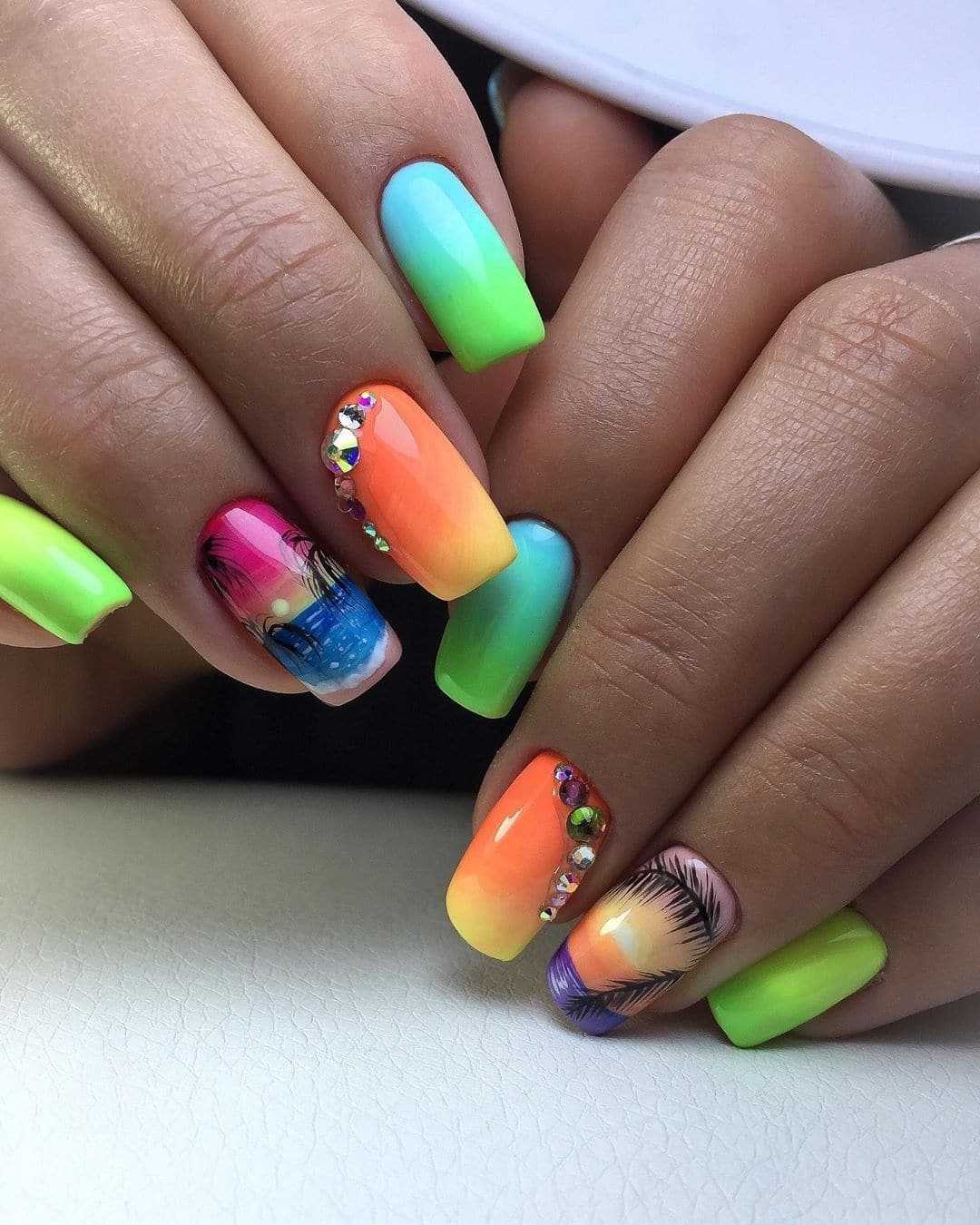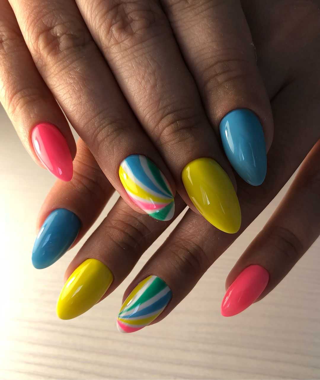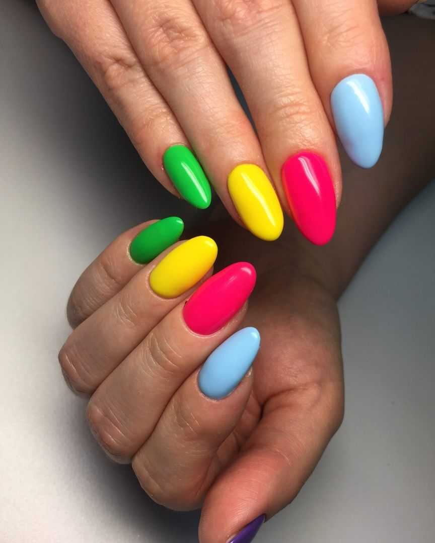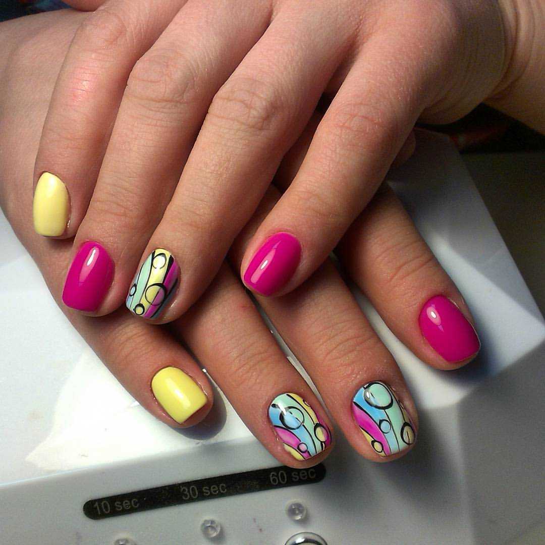 Весенне-летний модный маникюр как всегда радует яркими цветами. Желтый, зеленый, голубой, розовый в сочетании с нюдовыми и пастельными оттенками, цветочным и фруктовым принтом вдохновят на создание солнечного и яркого модного маникюра.