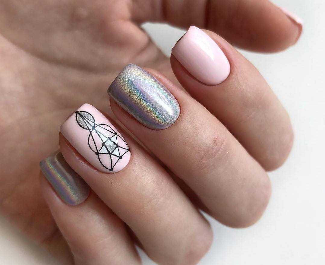 Модные тенденции на сегодняшний день предлагают освежить привычный квадрат на «Мягкий». Квадратная ногтевая пластина гармонично выглядит с геометрическими решениями и узорами.