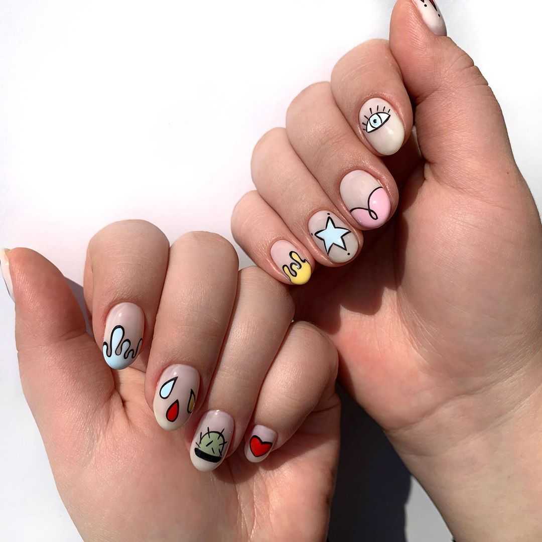 - Маникюр в стиле «разные ручки». Разный нейл-арт на обеих ручках – это один их самых популярных видов сейчас. Такой дизайн делает ноготки максимально необычными и красивыми.