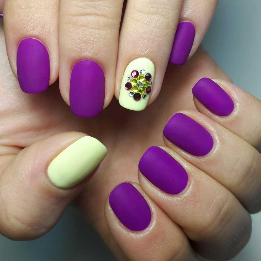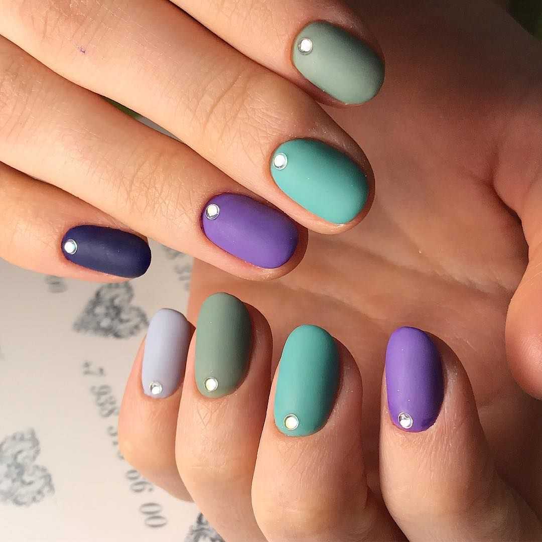 - Матовый дизайн ногтей. Изысканности и элегантности вам смогут легко придать ноготки с матовым покрытием. Его можно делать как с одним цветом, так и с несколькими, что придаст вашим ноготкам оригинальности.
