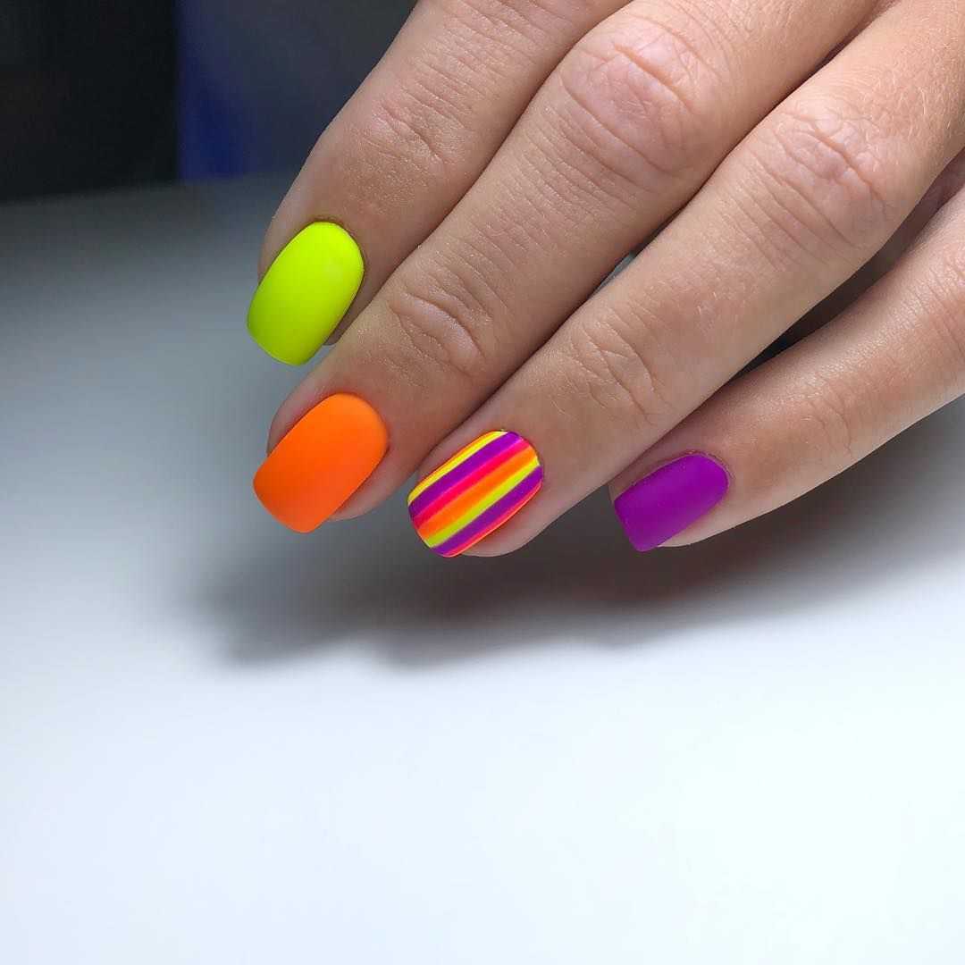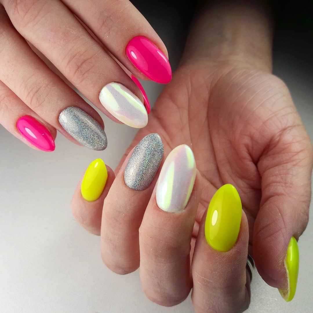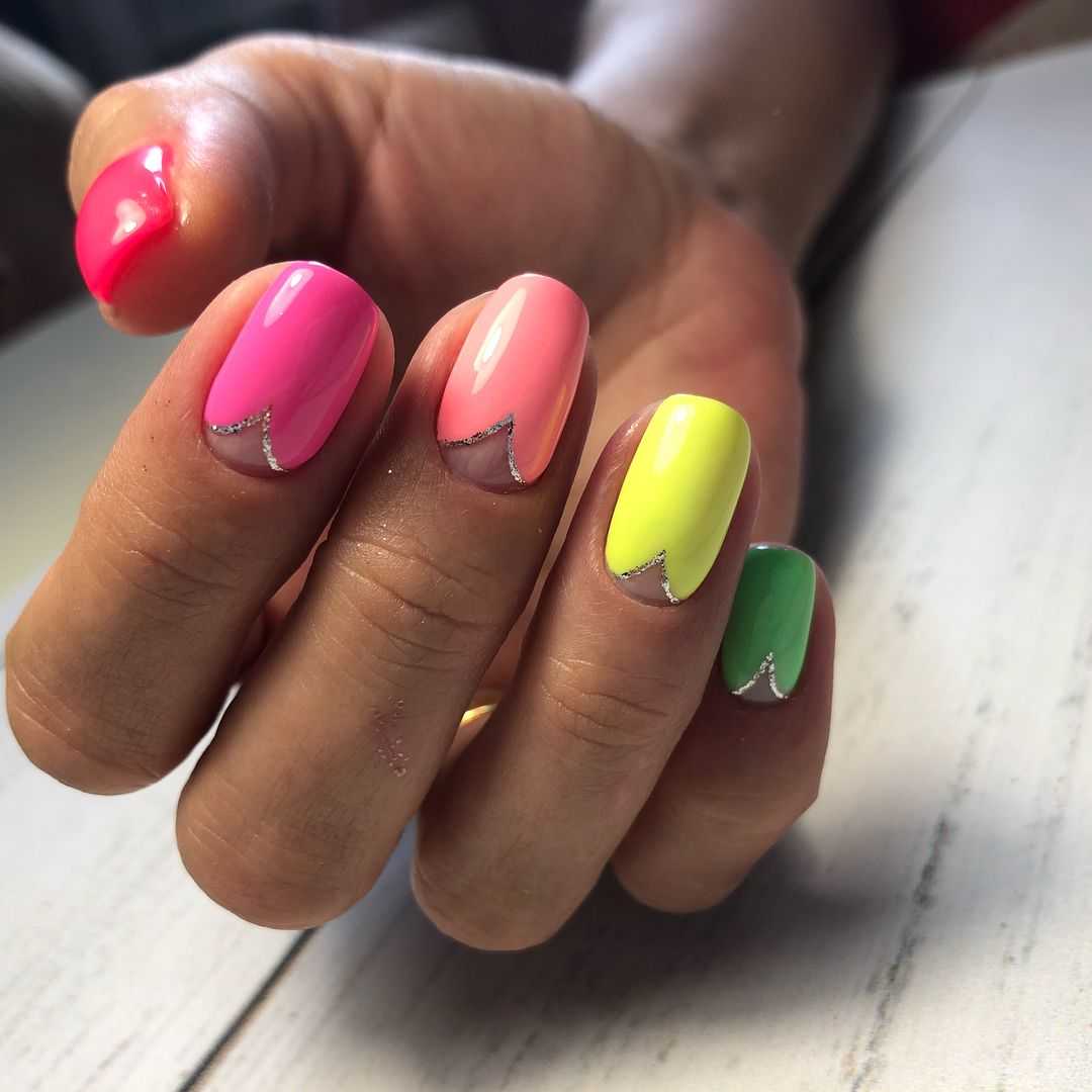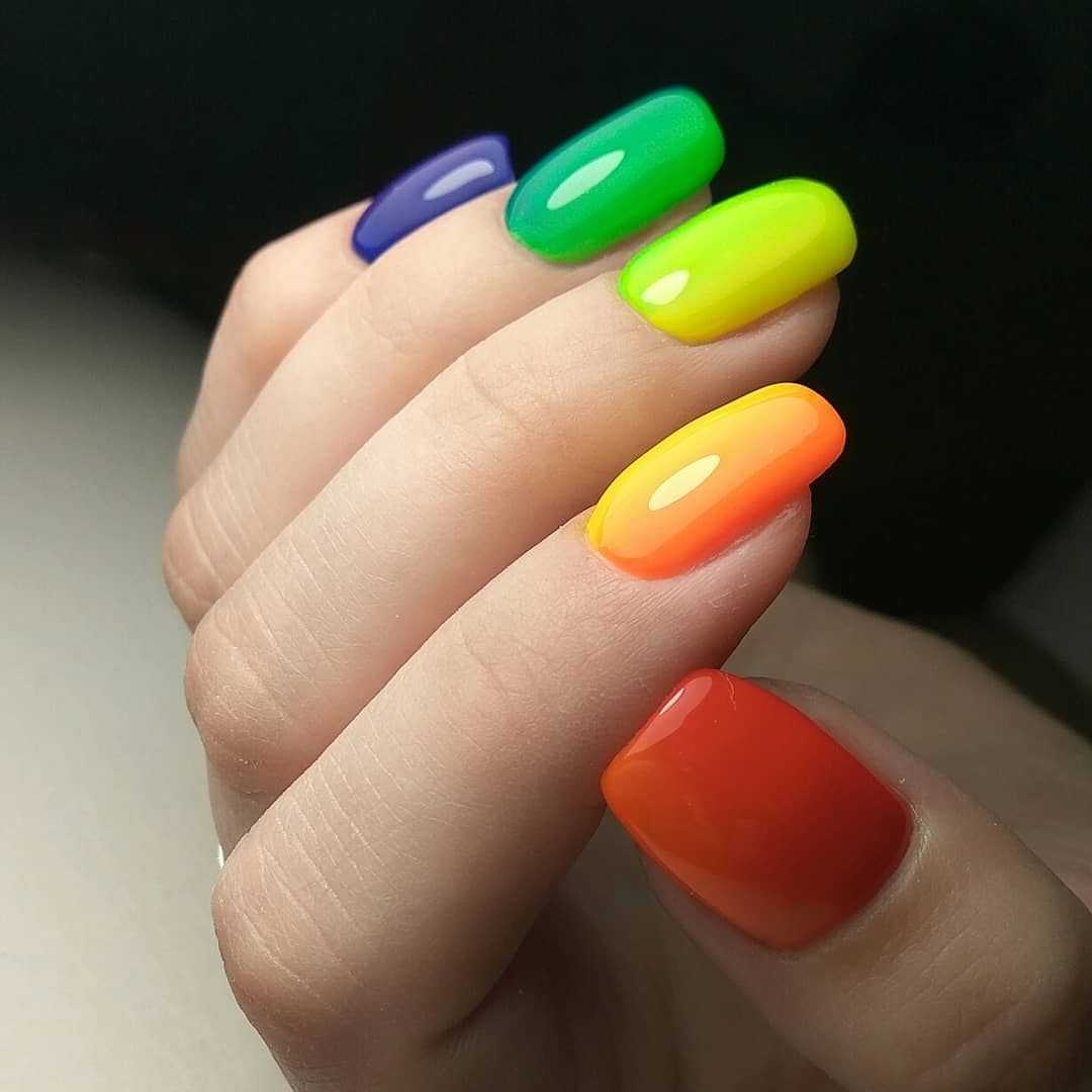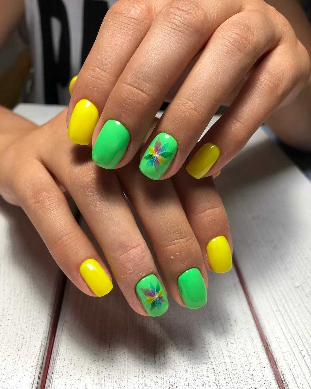 Бежевый, бледно-розовый, а также многочисленные оттенки чайной розы смотрятся на ноготках универсально. Модницам, которые предпочитаю «вау» эффект придутся по вкусу вариации желтого и зелёного в кислотном исполнении.