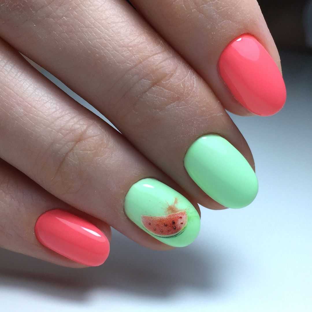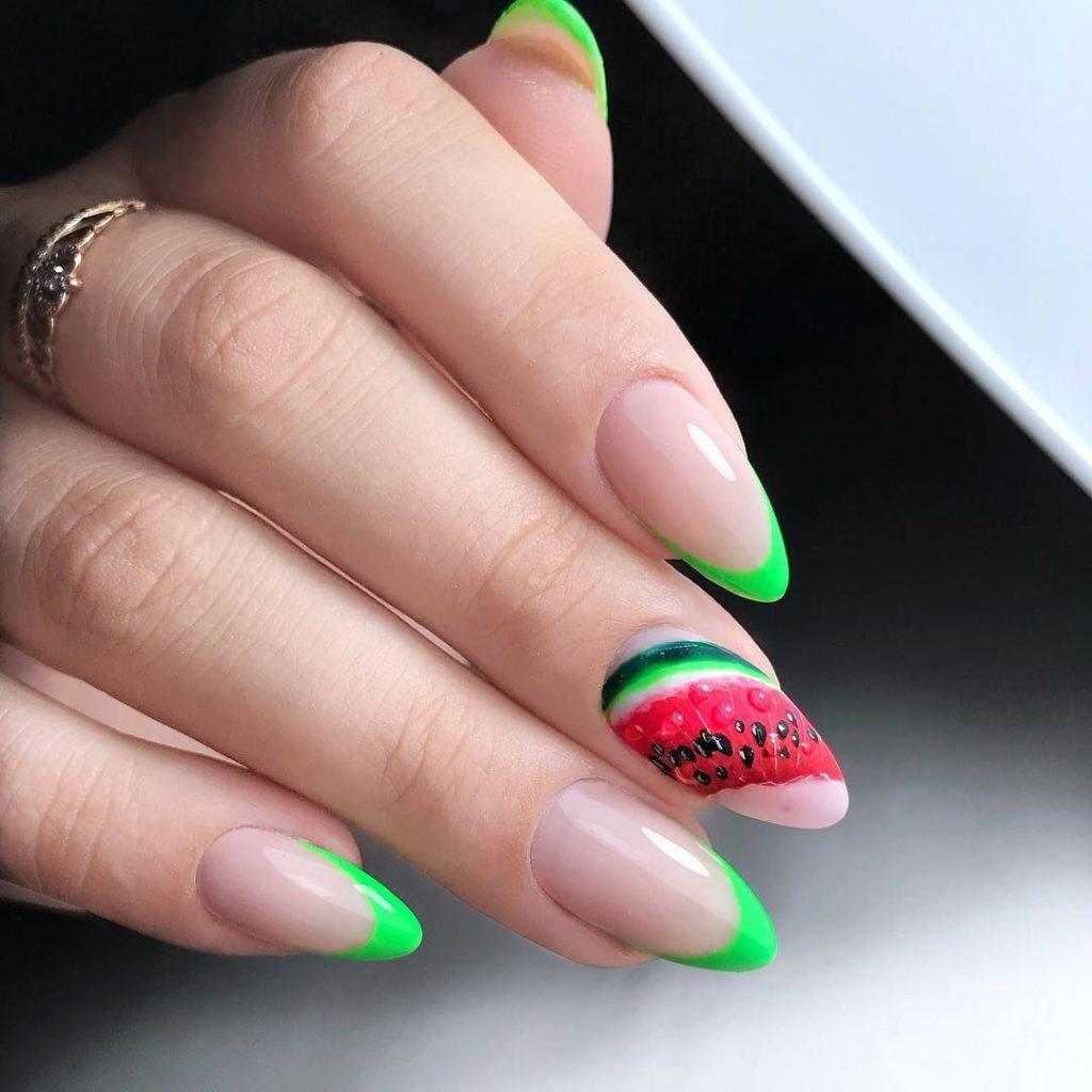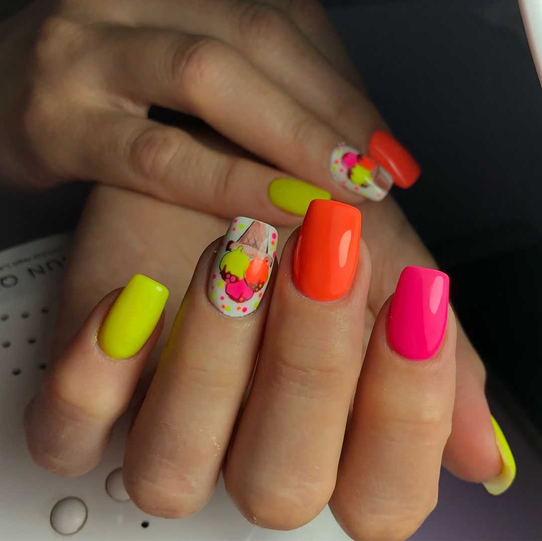 Модный нейл-арт тренд лета 2021 – разноцветье красок в естественных сочетаниях. Кто сказал, что сочетание яркой зелени клубничных листьев не сочетается с ярким цветом ягод и цветов?