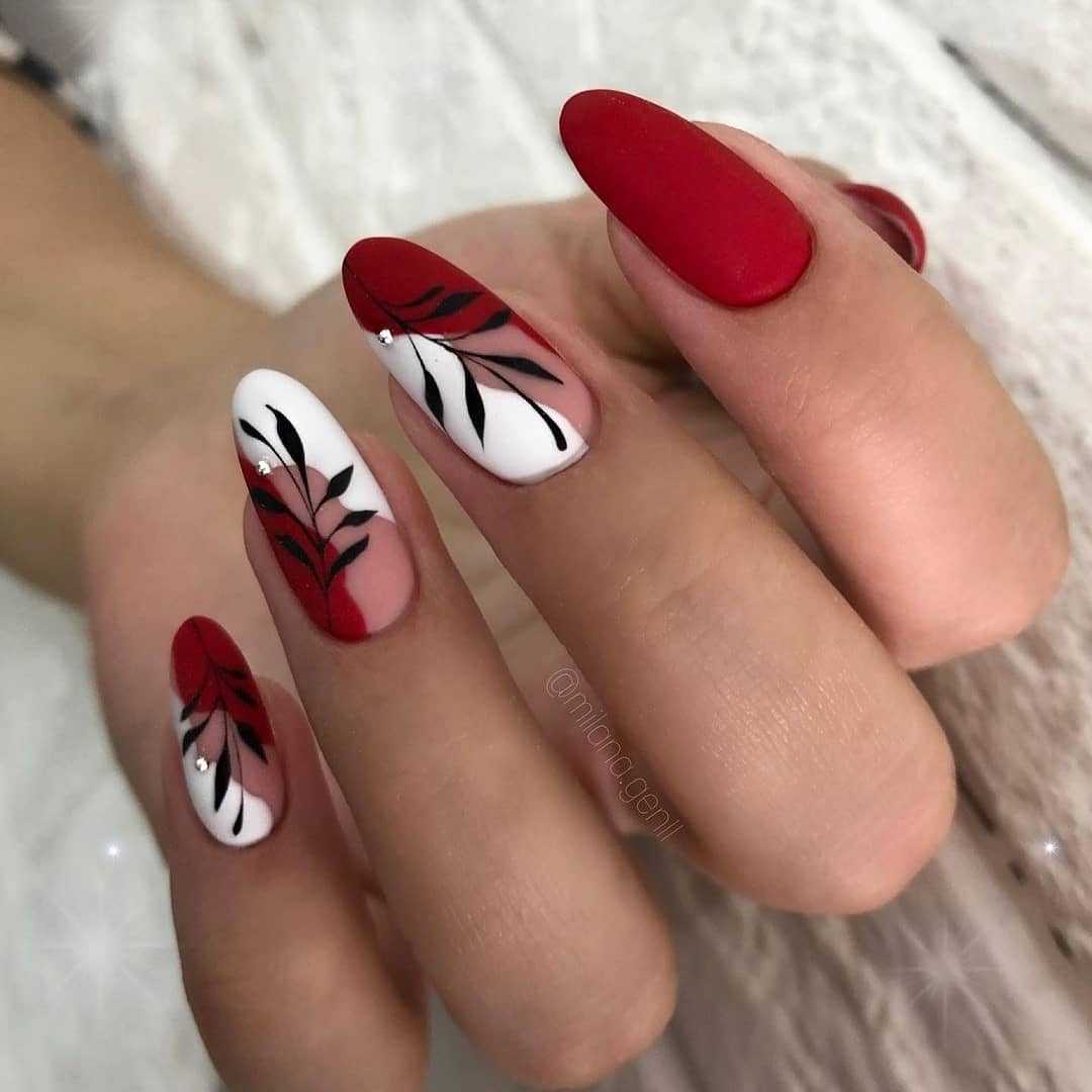 Тенденция выделения одного ногтя прижилась и в других видах модного маникюра 2021-2022. Речь идет о маникюре со стразами и рисунками, французском, лунном, матовом маникюре.