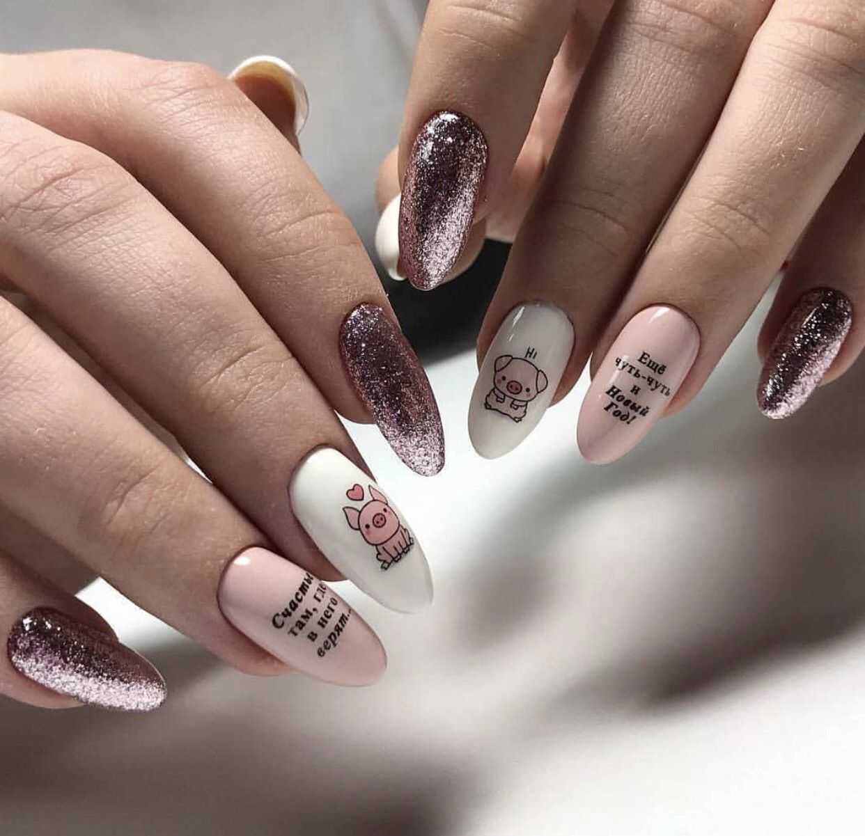 Разнообразные рисунки в маникюре нравятся многим барышням, ведь благодаря множеству стилей, направлений и техник можно создавать на пальчиках неповторимые и впечатляющие шедевры, которые очень «круто» смотрятся. Мегапопулярны сегодня интересные надписи в виде «крылатых» выражений, цитат и фраз, характеризующих жизненные позиции хозяйки маникюра. Большой популярностью пользуется анималистический принт, при выполнении которого, можно придерживаться не только натуральных природных оттенков, но и создавать на ноготках яркие и броские дизайны. Например, изобразить леопардовый окрас на красном или голубом основании, или оформить «зебру» в розово-фиалковом дуэте. Любительницам сладкого придутся по душе изображения сладостей, пончиков и мороженого. Игриво и кокетливо смотрятся фруктово-ягодные мотивы, цветочки, «няшные» мордашки домашних питомцев и насекомые. Также можно украсить ноготки изображениями «дамских штучек» в виде помад, кистей для макияжа и других «жителей» косметички.