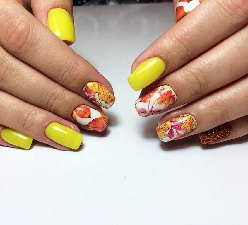 В тенденциях, касающихся выбора цветовой палитры маникюра, отмечается отход от приемлемых ранее принципов, какой цвет модный, а какие оттенки лучше отложить на потом. Поэтому в процессе оформления можно использовать любые цвета лаков, имитирующих краски, которые встречаются в природе в этот период года. Главное, чтобы каждый из оттенков максимально гармонично сочетался со стилистикой выбранного образа, а не смотрелся отдельным элементом.