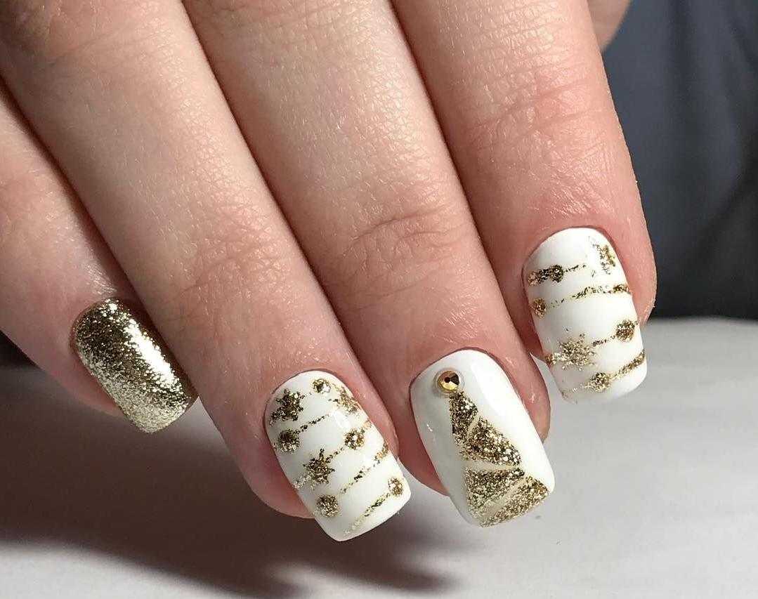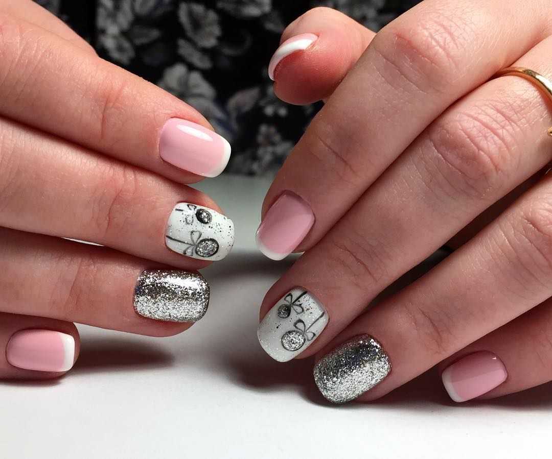 Даже самый простой однотонный маникюр или легкий френч засияет праздничным настроением, дополнив его дизайном стразами и блеском.