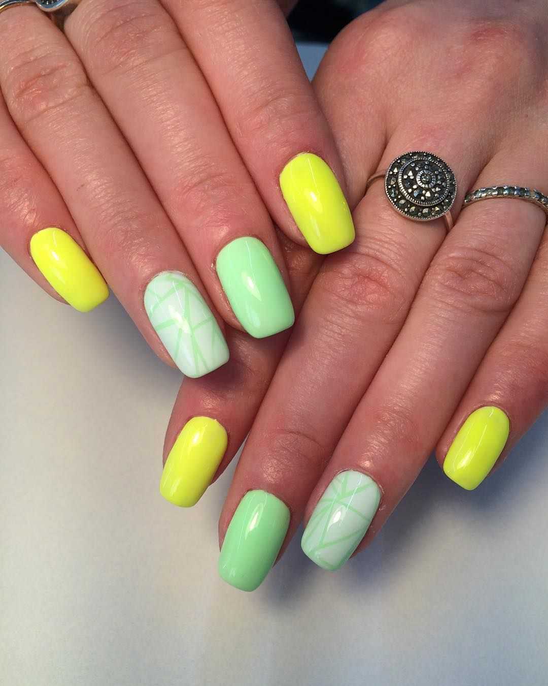 Комбинировать маникюр с зелёным нужно осторожно. Тон уместно сочетать в качестве акцентов