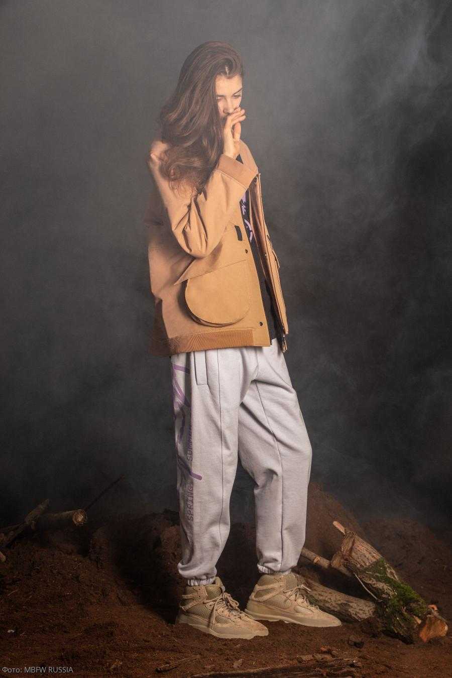 «Детьми мы делаем безрассудные поступки. Мы режем мамину шубу, чтобы сделать из нее игрушечного медведя, разрисовываем отремонтированные стены и раскрашиваем бабушкины старые фотографии. Мы хотим полететь в космос и покорить мир. Мы говорим только правду и открыты всему миру», — именно так прокомментировала основной посыл новой коллекции Настя Некрасова. Каждый образ от NASTYA NEKRASOVA – пример того, как расчлененные на части силуэты и формы приобретают новое звучание, соединяясь между собой. Это своеобразный деконструктивизм, который стараниями дизайнера становится главной составляющей каждого образа. Платья А-силуэта, пиджаки и куртки, абстрактные принты и рисунки в виде лиц, а также прозрачные материалы, расслабленный крой и свободные силуэты – все это легло в основу женской линии бренда. Мужской блок стилистически почти полностью повторяет то, что мы видели в первой части презентации. Основные цвета коллекции: пастельный фиолетовый, белый, темно-синий и camel. Нетрудно заметить, что каждый образ дополняется массивной обувью. Аксессуары же, напротив, отсутствуют, что дает нам возможность уделить больше внимания самой одежде и крою, нежели сопутствующим составляющим.