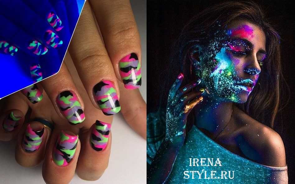 Все яркие оттенки роскошно светятся под лучами неоновой лампы и понравятся девушкам-подросткам, которые любят ночные дискотеки, вечеринки. Это прекрасный вариант для отпускного летнего маникюра. На пляже возле моря с таким дизайном ногтей вы будете выглядеть вполне уместно.