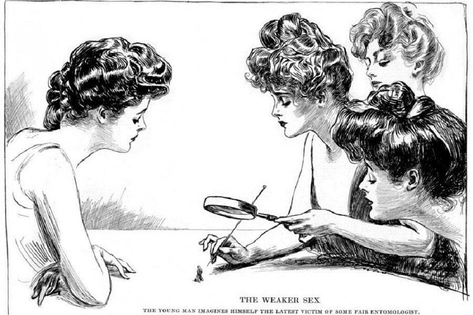 Тем не менее, женщины Гибсона уже могут видеть некоторые характеристики, которые позже были возведены в культ и массово использовались художниками пин-ап. Это крошечный рот, тонкие черты лица, изящная талия, большие бедра и грудь. Учтите, до откровенности образов 50-х моделям Гибсона было еще далеко.Кстати, о моделях. Интересный факт: рисунки Гибсона представила его сестра Нэнси Астор, ставшая первой леди британского парламента, знаменитая леди Астор.